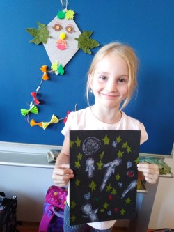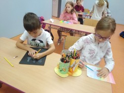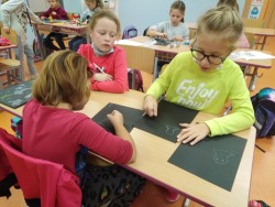 zkusili jsme je bílou pastelkou nakreslit. Výkresy jsme dozdobili