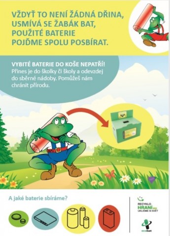 Naše škola obnovila svoji aktivitu v rámci projektu Recyklohraní. Do konce školního roku budeme sbírat vybité baterie. Na budově Komenského mohou děti nosit baterie v sáčku k paní učitelce Borčické do třídy 3.A. Na budově Benešova bude za prosklenými dveřmi umístěn zelený box.