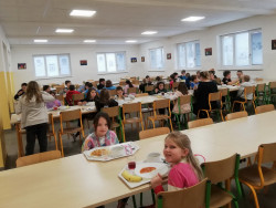 Řekněme si to upřímně: co bychom si bez školní jídelny počali? Po hodinách a hodinách krutého učení jednomu pořádně vyhládne, a tak s posledním zvoněním radostně běží (ač se to nesmí) do jídelny, kde už to nádherně voní. Ale to už všichni ví předem, protože to většinou voní od rána po celé škole. Naše paní kuchařky totiž vůbec nelelkují, ale od časného rána nám strojí hostinu. A že školní jídla chutnají výtečně, dosvědčí mlsouni s talířem, kteří si pravidelně chodí přidávat.