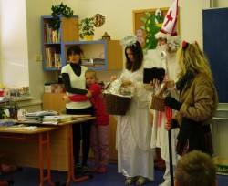 Atmosféra první prosincové středy na prvním stupni modřické školy připomínala včelí úl. Všeobecné vzrušení, lehké obavy a očekávání něčeho výjimečného bylo cítit z každého zákoutí. Bylo 5. prosince a děti už dobře věděly, že přijde Mikuláš v nebeské a pekelné společnosti. Takže když se na chodbách ozvalo první zařinčení řetězů a dupot čertích kopyt, v dětských dušičkách se začaly mísit pocity strachu a touhy. Ti malincí zpytovali svědomí, jestli jim jejich letošní hříchy Mikuláš odpustí a ti větší, lehce pubertální přemýšleli, jak vyzrát na čerty a zároveň urvat kousek slávy pro sebe. Všichni společně se ale moc těšili na mikulášskou nadílku.