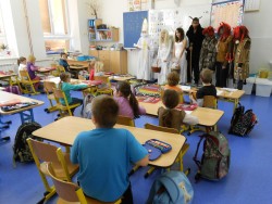 Pátý prosincový den ve škole na Komenského provázelo napětí, shon a chaos. Děti totiž dokončovaly nácvik vystoupení na vánoční jarmark, který se měl odehrát následující den a některé třídy měly divadelní představení. Přes všechny přesuny tříd a obavy, aby se všechno podařilo, však jasně vyčnívalo očekávání Mikuláše a jeho hlučné družiny. I letos museli hříšníci odpykávat své