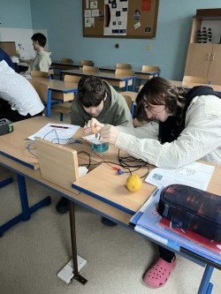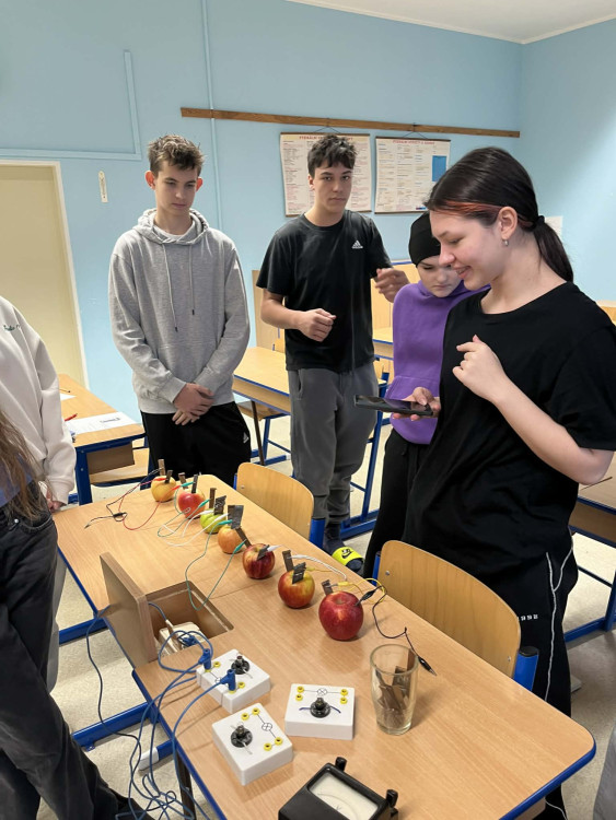 Velkým zážitkem byla výroba galvanického článku z ovoce a pokus o rozsvícení malé žárovky. Žáci si tak uvědomili princip fungování baterií, které jsou součástí dnešního života, i jejich environmentální dopady.