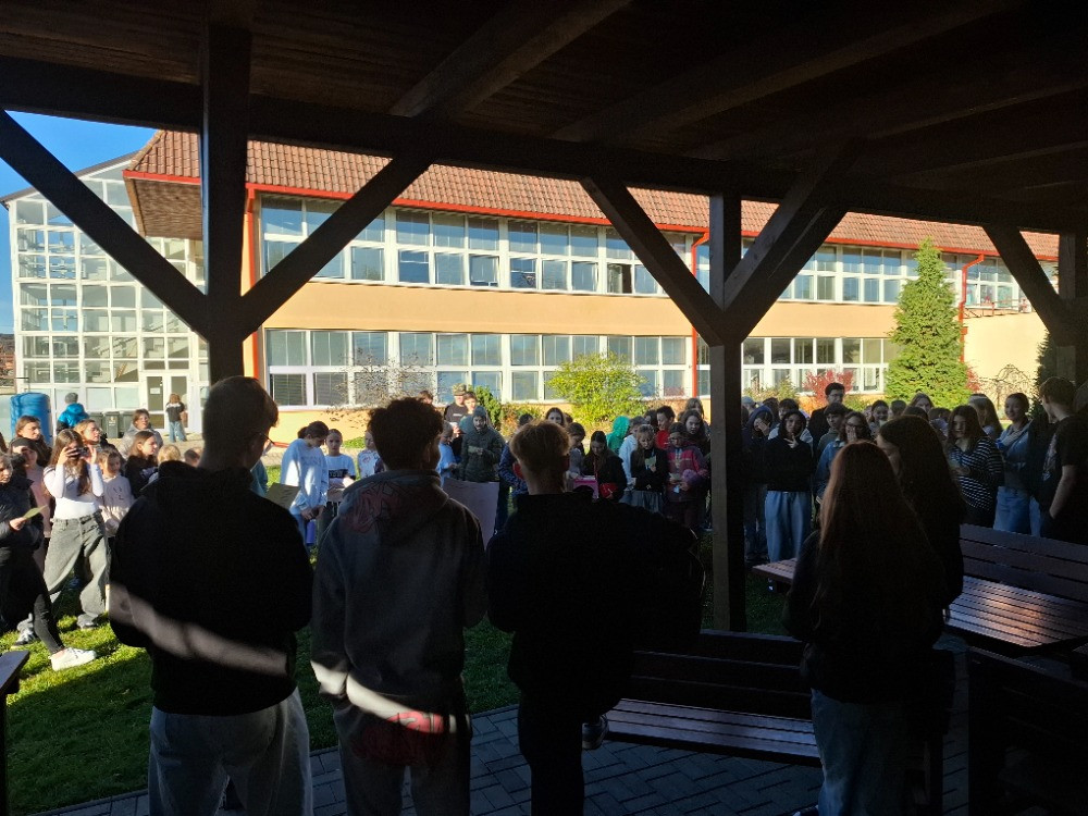 Vyvrcholením celé akce byla velká přestávka. Na školním dvoře se společně zpívala píseň Náměšť