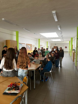 . Třídy přicházely na chodbu v předem určených časech a postupně si vyslechly krátké prezentace doplněné zajímavostmi i otázkami k zamyšlení.